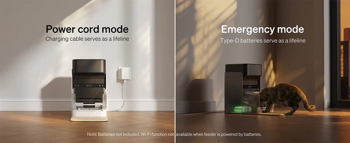 Works with a power adapter and backup batteries to ensure uninterrupted feeding during power outages.
