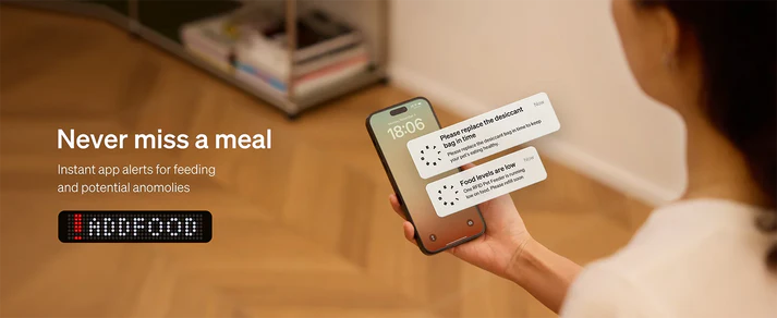 Set precise feeding times and portion sizes remotely from your smartphone. Monitor your pet’s feeding habits with ease.